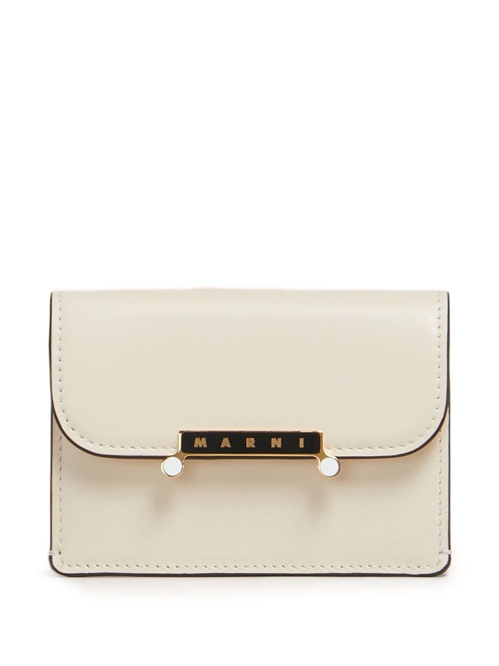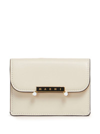 leather envelope flap wallet Highlights - Cream - Gold-tone logo plaque - Contrasting trim - Internal card slots - Snap closure Made in Italy Composition Lining: Bovine Leather 100%, Viscose 100% Outer: Brass 100%, Calf Leather 100%