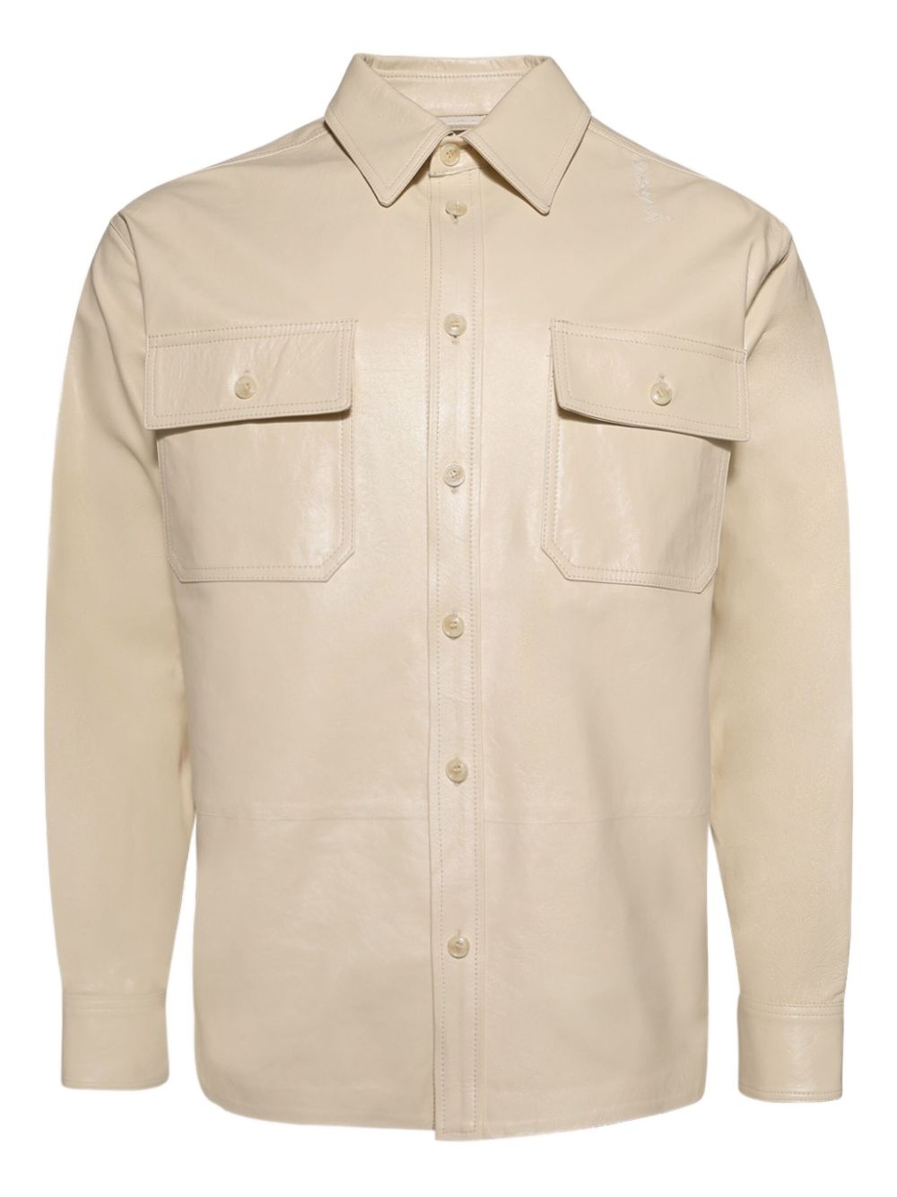 leather shirt Highlights - Light beige - Front button fastening - Chest flap pockets - Buttoned cuffs - Long sleeves Imported Composition Leather 100%