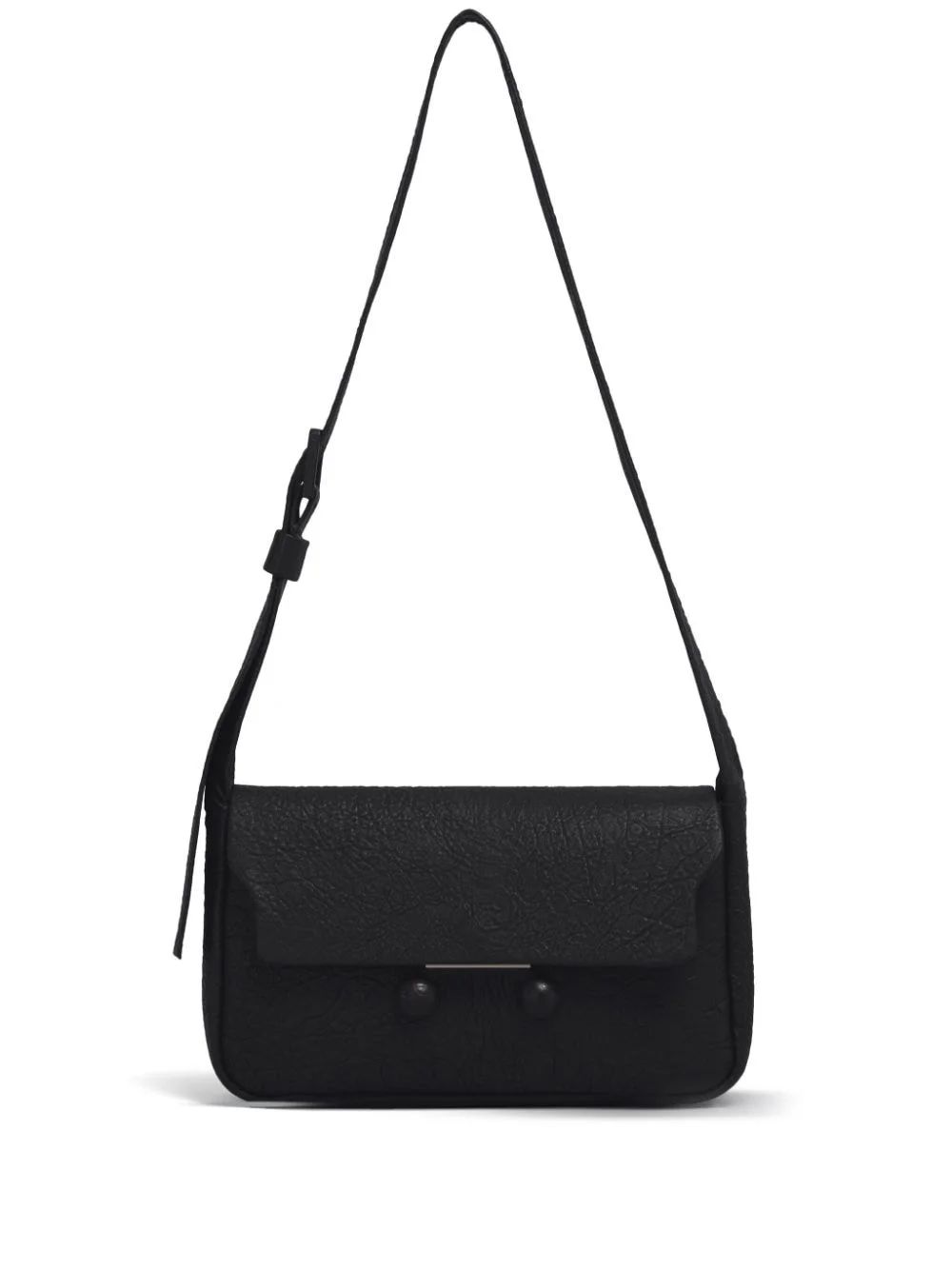 leather shoulder bag Highlights - Black - Leather - Textured finish - Foldover top with magnetic fastening - Adjustable shoulder strap - Main compartment - Internal slip pocket Made in Italy Composition Outer: Ovine Leather (top grain) 100%