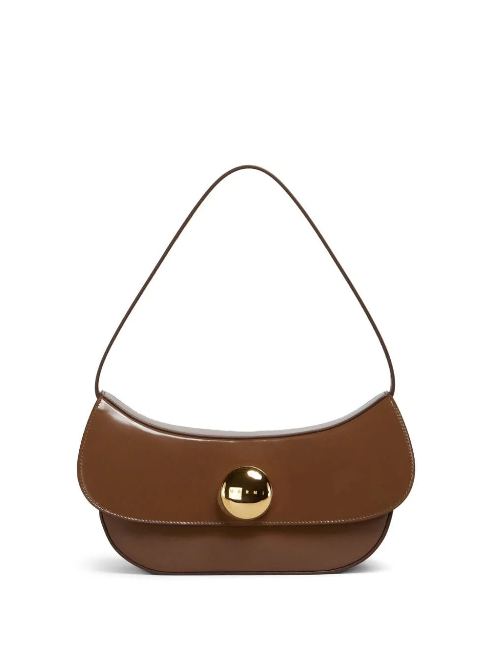 leather shoulder bag Highlights - Brown - Calf leather - Foldover top with magnetic fastening - Gold-tone hardware - Single shoulder strap - Main compartment - Debossed logo to the rear - Internal logo patch Made in Italy Composition Outer: Ovine Leather (top grain) 100%, Calf Leather 100% Lining: Calf Leather 100%