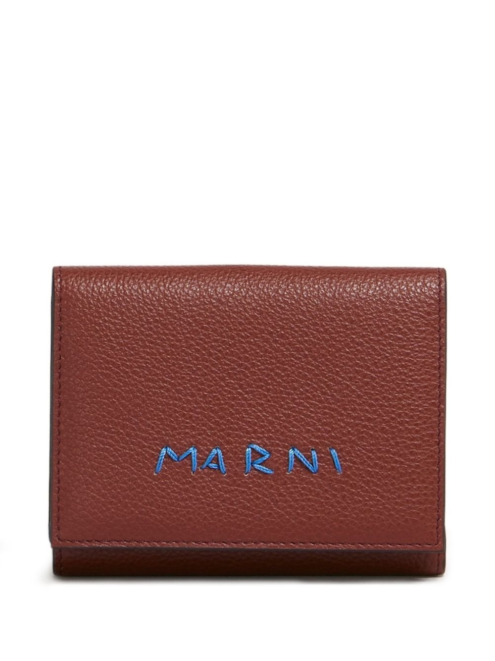 BROWN LEATHER TRIFOLD WALLET WITH MARNI MENDING EMBROIDERY