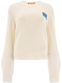 WHITE CASHMERE JUMPER WITH MARNI MENDING PATCH