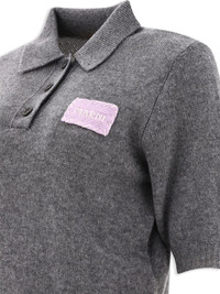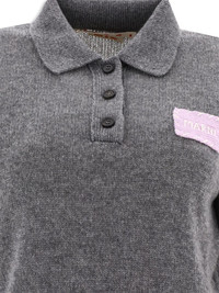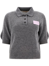 logo-applique cashmere sweater Highlights - Grey - Cashmere - Logo patch at the chest - Polo collar - Half-length sleeves - Front button placket - Ribbed cuffs and hem - Cropped Made in Italy Composition Cashmere 100% SIZE & FIT Measurement SLEEVE LENGTH 12 in(30.5 cm) LENGTH 18.5 in(47 cm) WAIST 32 in(81.3 cm) BUST 35.98 in(91.4 cm)