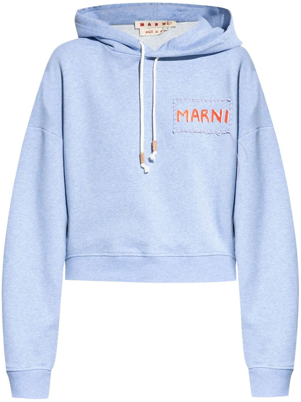 logo-applique cotton hoodie Highlights - Blue - Cotton - Long sleeves - Ribbed cuffs and hem - Drawstring hood - Applique logo Made in Italy Composition Cotton 100% SIZE & FIT FittingInformation Designed to be unstructured, offering a loose fit throughout Made from a midweight non-stretch fabric, this piece offers minimal elasticity when worn Washing instructions Read Manufacturer Guidelines