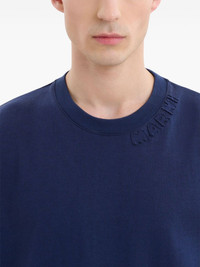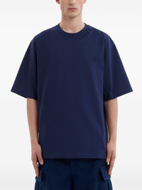 logo-applique cotton T-shirt Highlights - Navy blue - Cotton - Jersey texture - Applique logo - Crew neck - Drop shoulder - Short sleeves - Straight hem Made in Italy Composition Cotton 100% SIZE & FIT FittingInformation Designed to be unstructured, offering a loose fit throughout Made from a midweight non-stretch fabric, this piece offers minimal elasticity when worn This piece fits true to size – take your usual size