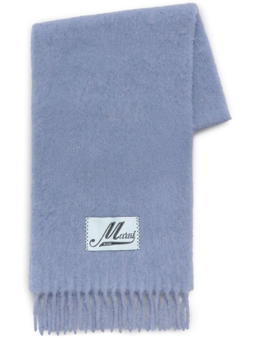 logo-applique scarf Highlights - Purple - Alpaca wool-blend - Knitted construction - Brushed finish - Applique logo - Fringe detailing - Rectangle shape Made in Italy Composition Alpaca Wool 80%, Polyamide 20% SIZE & FIT Measurement LENGTH 86.61 in(220 cm) WIDTH 13.77 in(35 cm)