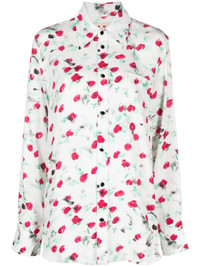 logo-buttons floral-print shirt Marni's playful take on garments permeates this crepe-texture shirt, emblazoned with an intricate and vibrant floral print. It is cut in Italy to a flowy relaxed silhouette. Highlights - White/multicolour - Crepe texture - Pleat detailing to the sleeves - Box-pleat detail to the rear - Floral print - All-over logo print - Logo-engraved buttons - Pointed flat collar - Front button fastening - Drop shoulder - Long sleeves - Buttoned cuffs - Chest patch pocket - Curved hem - Unlined Made in Italy Composition Viscose 100% SIZE & FIT Model measurements Height 5 ft 11 in(1.8 m) Bust/Chest 34.25 in(87 cm) Hips 35.82 in(91 cm) Waist 24.8 in(63 cm) Measurement SLEEVE LENGTH 22.83 in(58 cm) HIPS 38.18 in(97 cm) LENGTH 27.95 in(71 cm) WAIST 36.22 in(92 cm) FittingInformation Designed for a relaxed fit, this piece allows for comfort and movement when worn Made from a midweight non-stretch fabric This piece fits true to size – take your usual size Washing instructions Dry Clean Only