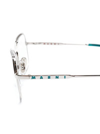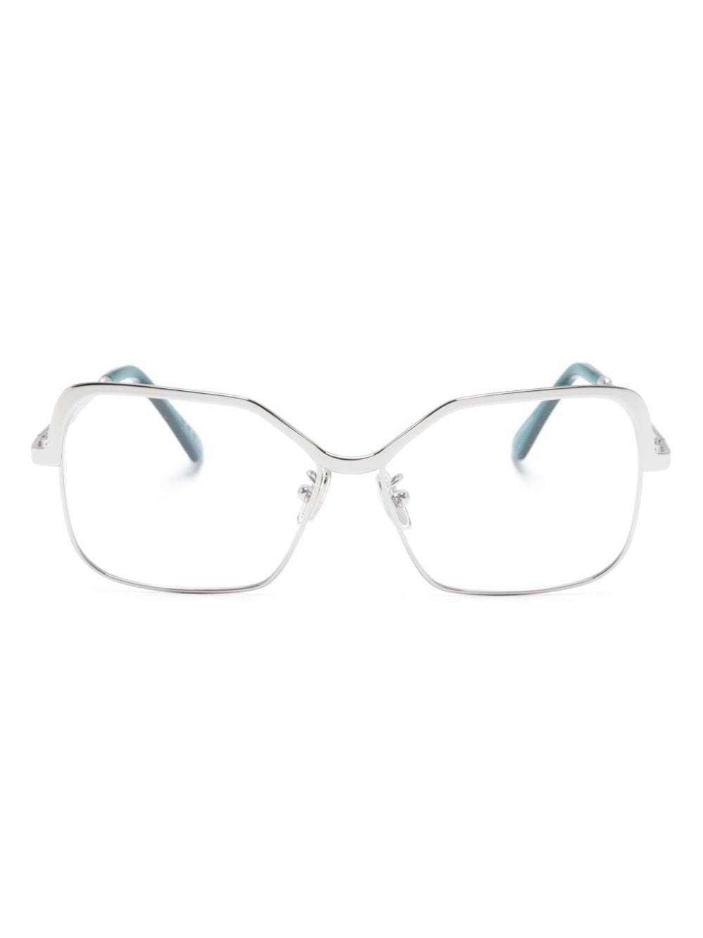 logo-debossed square-frame glasses Highlights - Silver-tone/blue - Metal - Square frame - Clear lenses - Logo-debossed arm - Nose pads - Straight arms - Curved tips - These glasses come with a protective case. - All glasses from farfetch are sold as non-prescription frames. Made in Italy Composition Outer: Metal 100% SIZE & FIT Measurement Arm Length 5.7 in(14.5 cm) Bridge Width 0.55 in(1.4 cm) Lens Diameter 2.2 in(5.6 cm) Total Width 5.11 in(13 cm)