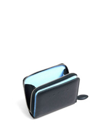logo-embossed leather wallet Highlights - Black/blue - Leather - Grained texture - Embossed logo to the front - Partitioned compartment - All-around zip fastening - Press-stud fastening - Internal card slots - Contrast lining Made in Italy Composition Lining: Sheepskin 100%, Viscose 100% Outer: Calf Leather 100% SIZE & FIT Measurement DEPTH 0.98 in(2.5 cm) LENGTH 3.74 in(9.5 cm) WIDTH 4.33 in(11 cm)