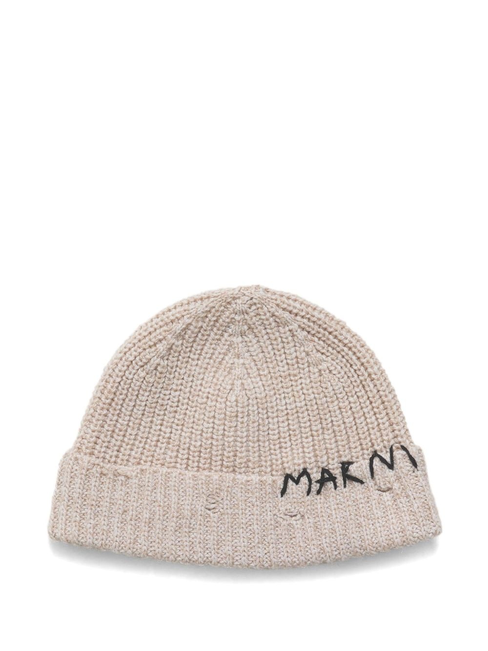 BEIGE WOOL BEANIE WITH MARNI MENDING EMBROIDERY