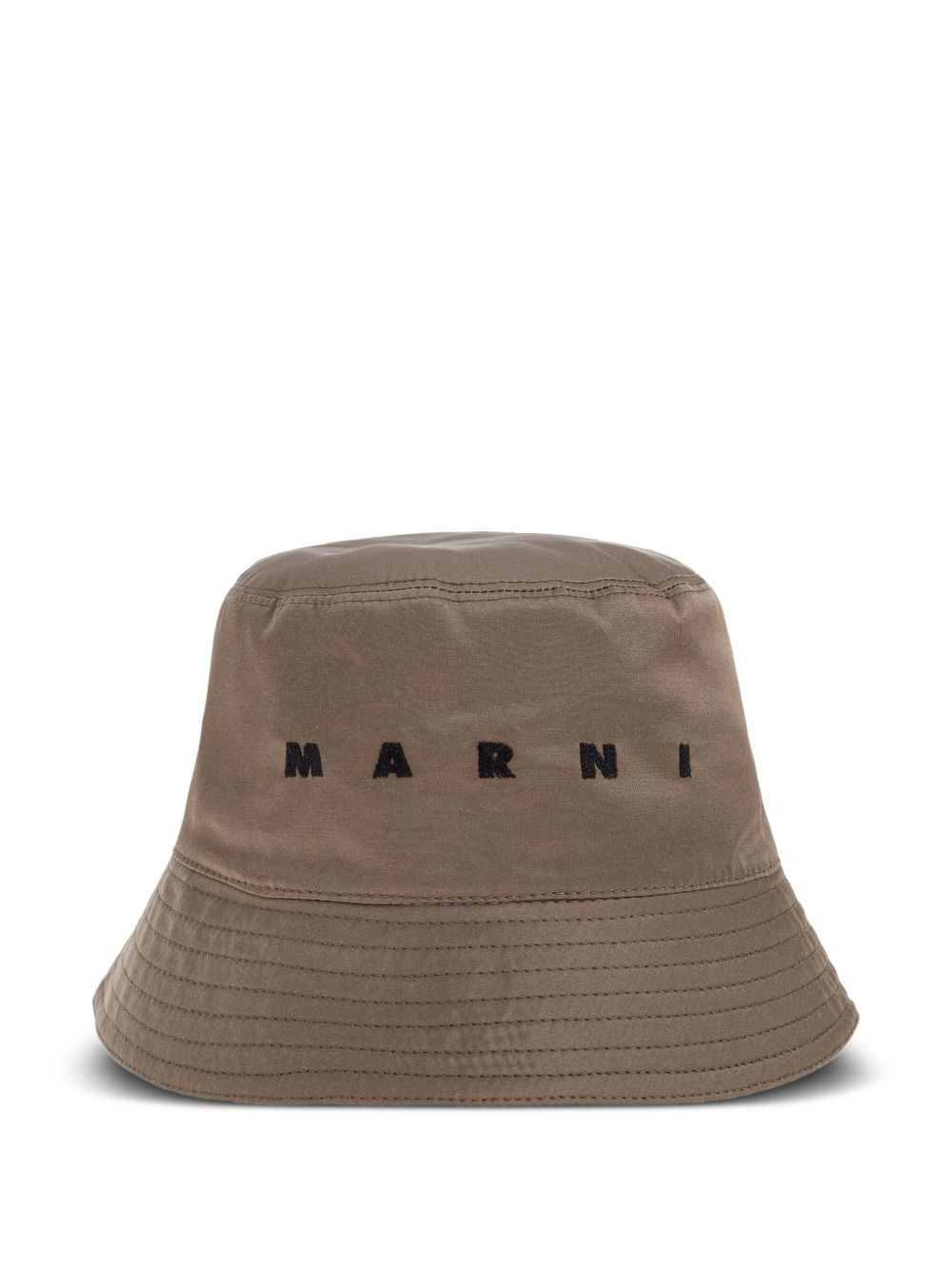 logo-embroidered bucket hat Highlights - Dark brown - Embroidered logo - Flat crown - Wide brim - Bucket shape - Subtle stitching Made in Italy Composition Polyester 67%, Cotton 33%