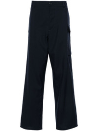 logo-embroidered cargo trousers Highlights - Midnight blue - Virgin wool - Embroidered logo to the side - Concealed front button fastening - Belt loops - Straight leg - Two side slit pockets - Two side cargo pockets - Rear flap pocket Imported Composition Lining: Cotton 69%, Polyamide 31% Outer: Virgin Wool 100% SIZE & FIT Model measurements Height 6 ft 1 in(1.85 m) Bust/Chest 35.82 in(91 cm) Hips 37.79 in(96 cm) Waist 29.13 in(74 cm) FittingInformation Designed for a relaxed straight leg, allowing a comfortable and loose fit over the leg Made from a midweight non-stretch fabric This piece fits true to size – take your usual size