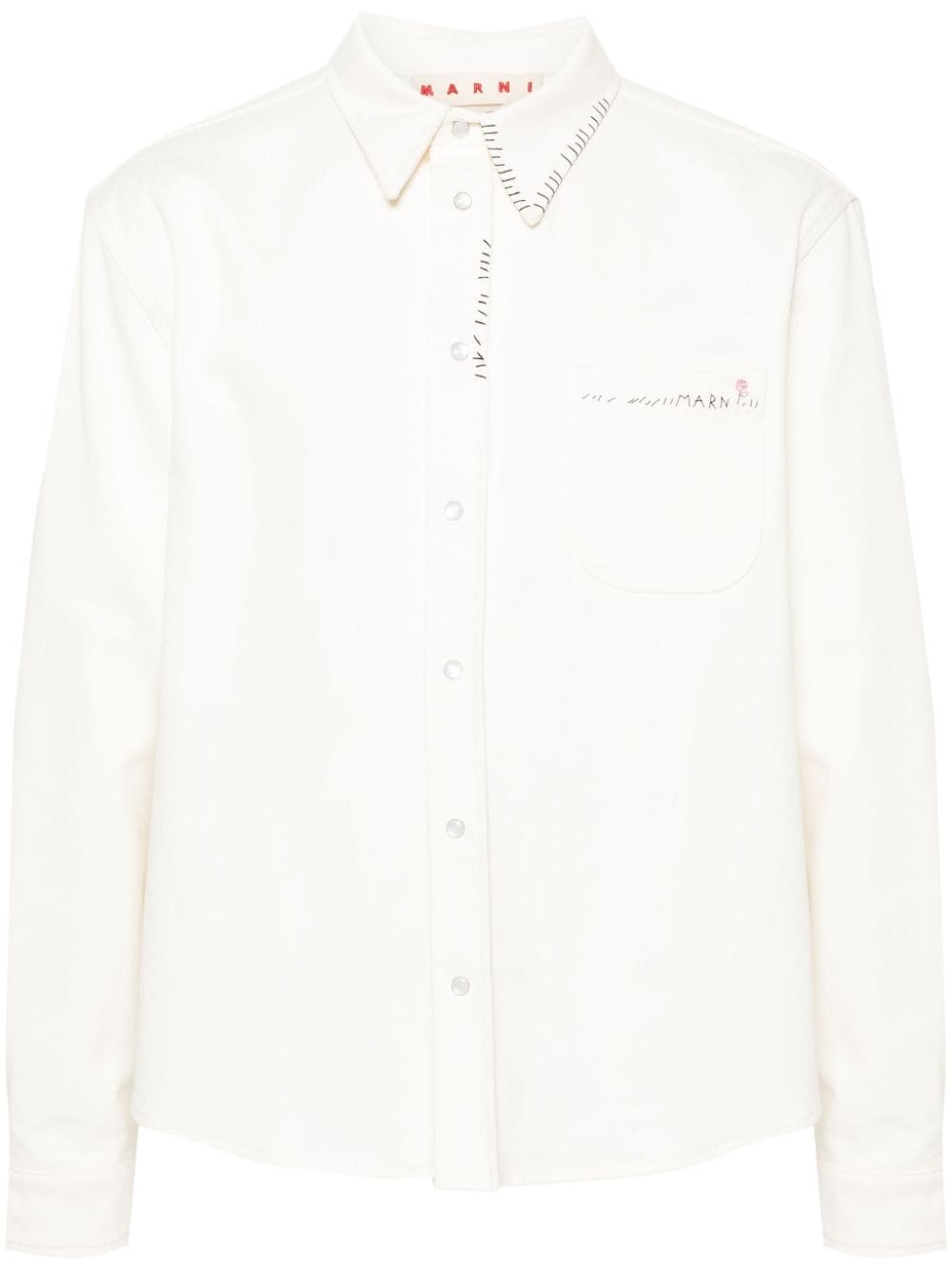 logo-embroidered cotton shirt Highlights - Cream white - Cotton - Twill weave - Whipstitch detailing - Embroidered logo at the chest - Pointed flat collar - Long sleeves - Press-stud fastening cuffs - Chest patch pocket - Curved hem - Front press-stud fastening Made in Italy Composition Cotton 100% SIZE & FIT Model measurements Height 6 ft 1 in(1.85 m) Bust/Chest 35.82 in(91 cm) Hips 37.79 in(96 cm) Waist 29.13 in(74 cm) FittingInformation Designed for a regular fit, allowing for a comfortably loose fit throughout the body Made from a midweight non-stretch fabric This piece fits true to size – take your usual size
