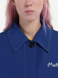 logo-embroidered jacket Marni keeps it simple with this oversized jacket from the SS23 collection. Rendered in a midnight blue hue, this long-sleeve piece is minimally detailed with an embroidered logo on the chest. Made in Italy Composition Polyester 100%