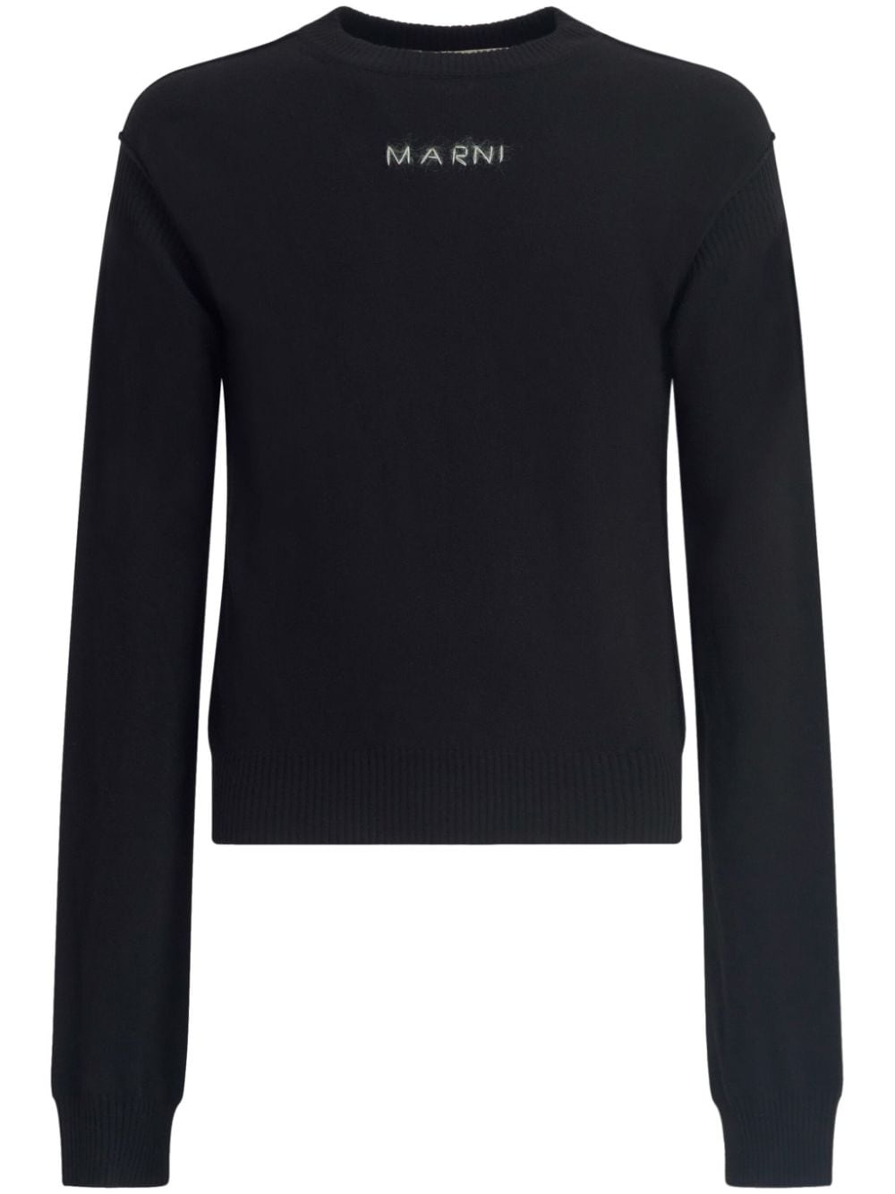 logo-embroidered jumper Highlights - Black - Virgin wool - Embroidered logo to the front - Crew neck - Long sleeves - Straight hem Imported Composition Virgin Wool 100%
