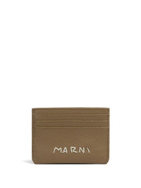 BROWN LEATHER CARDHOLDER WITH MARNI MENDING