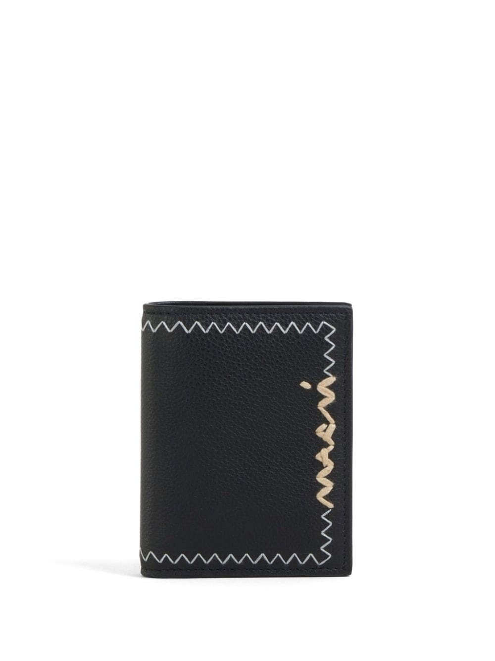 logo-embroidered leather wallet Highlights - Black - Calf leather - Embroidered logo - Grained texture - Decorative stitching - Bi-fold design - Embroidered logo to the front - Note compartment - Internal card slots - Coin pocket - Debossed internal logo - Press-stud fastening Made in Italy Composition Outer: Calf Leather 100%