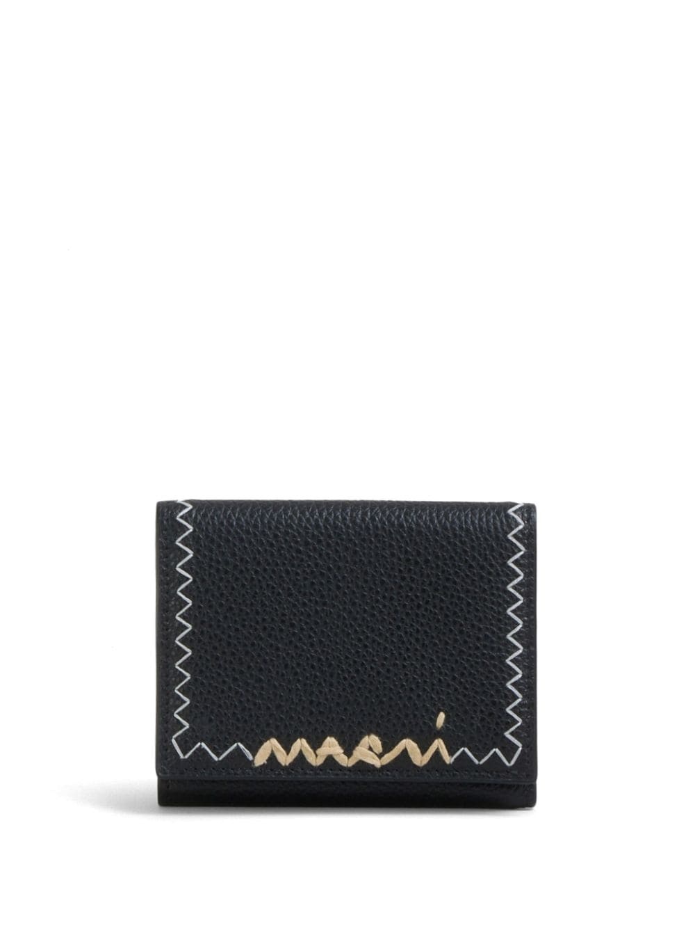 BLACK LEATHER TRIFOLD WALLET WITH MARNI SYMBOL LOGO