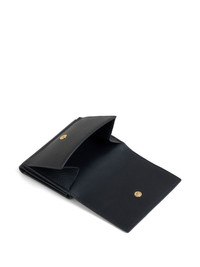 logo-embroidered leather wallet Highlights - Black - Calf leather - Grained texture - Embroidered logo - Decorative stitching - Tri-fold design - Press-stud fastening - Coin pocket - Internal note compartments - Internal card slots Made in Italy Composition Outer: Calf Leather 100% SIZE & FIT Measurement DEPTH 1.57 in(4 cm) HEIGHT 3.14 in(8 cm) WIDTH 3.93 in(10 cm)