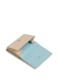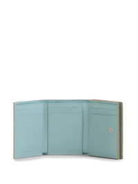 logo-embroidered leather wallet Highlights - Beige/light blue - Calf leather - Grained texture - Embroidered logo to the front - Tri-fold design - Press-stud fastening - Coin pocket - Internal note compartments - Internal card slots - Contrast lining Made in Italy Composition Outer: Calf Leather 100%