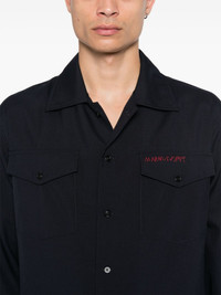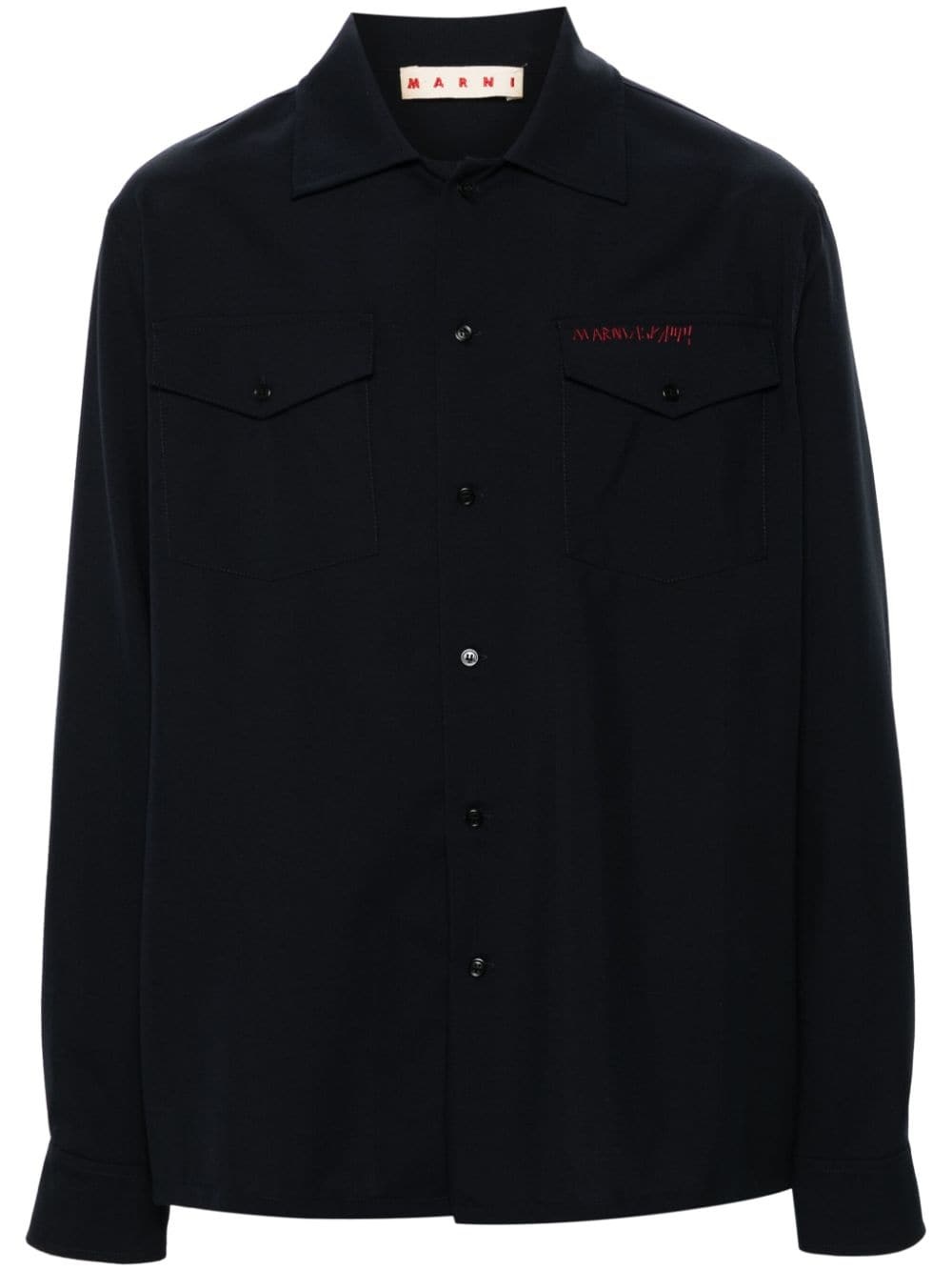 logo-embroidered shirt Highlights - Midnight blue - Virgin wool - Classic collar - Long sleeves - Buttoned-cuff sleeves - Embroidered logo at the chest - Two chest flap pockets - Two side inset pockets - Straight hem - Front button fastening Imported Composition Virgin Wool 100% SIZE & FIT Model measurements Height 6 ft 1 in(1.85 m) Bust/Chest 35.82 in(91 cm) Hips 37.79 in(96 cm) Waist 29.13 in(74 cm) FittingInformation Designed to be unstructured, offering a loose fit throughout Made from a midweight non-stretch fabric This piece fits true to size – take your usual size