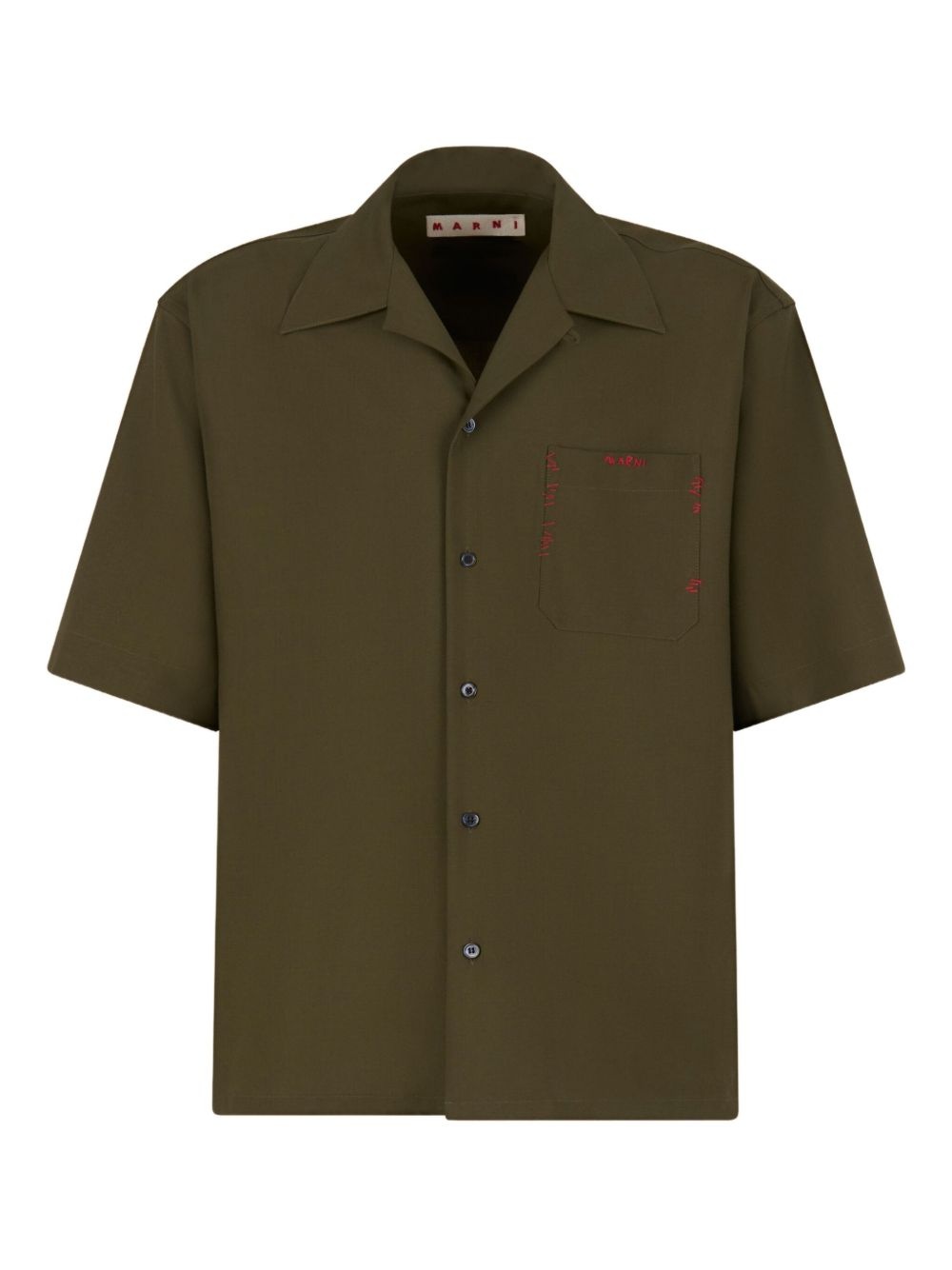 logo-embroidered short-sleeve shirt Highlights - Olive green - Chest patch pocket - Front button fastening - Camp collar - Contrasting embroidery Imported Composition Virgin Wool 100% Washing instructions Read Manufacturer Guidelines