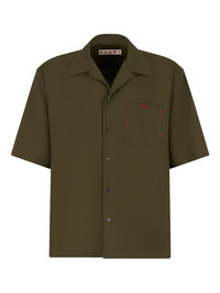DEEP GREEN TROPICAL WOOL BOWLING SHIRT WITH MARNI MENDING