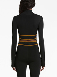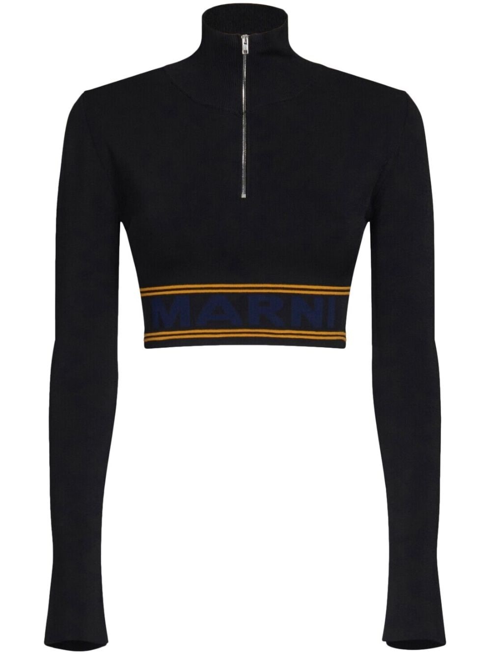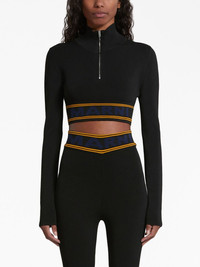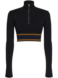 logo-underband cropped jumper Highlights - Black - Knitted construction - Intarsia-knit logo - Half front zip fastening - Long sleeves - Cropped Imported Composition Viscose 94%, Polyester 6% Washing instructions Do Not Wash/Do Not Dry Clean