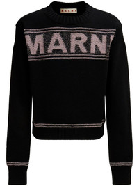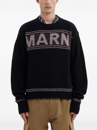 BLACK WOOL JUMPER WITH MAXI MARNI INTARSIA