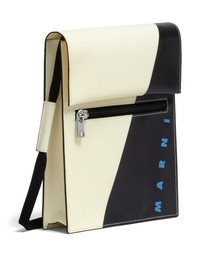 WHITE AND BLACK TRIBECA POUCH WITH SHOELACE STRAP
