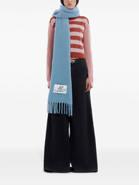 logo-patch alpaca wool-blend scarf blue alpaca wool-blend logo patch to the front frayed edge rectangle shape wraparound style Made in Italy Composition Alpaca Wool 80%, Polyamide 20% SIZE & FIT Measurement LENGTH 86.61 in(220 cm) WIDTH 13.77 in(35 cm)