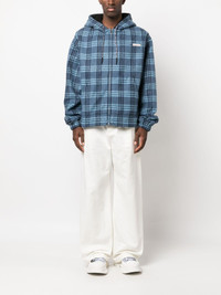 logo-patch check-print jacket Highlights - Blue - Check print - Logo patch at the chest - Drawstring hood - Front zip fastening - Drop shoulder - Long sleeves - Elasticated cuffs - Front pouch pocket - Straight hem Made in Italy Composition Outer: Polyester 76%, Acrylic 13%, Virgin Wool 11% Lining: Polyamide 100% SIZE & FIT Model measurements Height 6 ft 0 in(1.84 m) Bust/Chest 36.22 in(92 cm) Hips 35.43 in(90 cm) Waist 26.77 in(68 cm) FittingInformation Designed to be unstructured, offering a loose fit throughout Made from a midweight non-stretch fabric This piece fits true to size – take your usual size Washing instructions Dry Clean Only