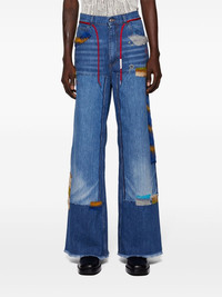 logo-patch cotton jeans Highlights - Indigo blue - Cotton - Washed denim - Logo patch to the rear - Belt loops - Front button fastening - Drawstring fastening - Classic five pockets - Wide leg Imported Composition Cotton 100% Washing instructions Read Manufacturer Guidelines
