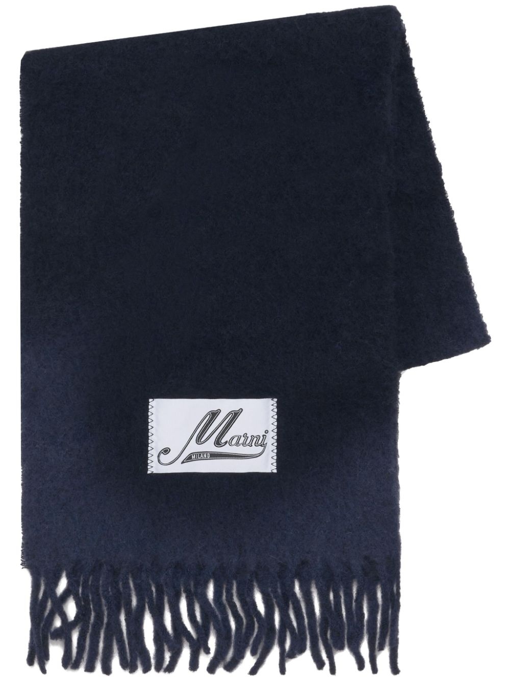 logo-applique alpaca scarf The finishing touch to take you from warm to hot. This scarf from Marni and its logo patch detail is sure to take any ensemble to the next level. Wrap up in style. Highlights - Black - Alpaca wool blend - Logo patch to the front - Fringed edge - Wraparound style Made in Italy Composition Alpaca Wool 80%, Polyamide 20% SIZE & FIT Model measurements Height 6 ft 1 in(1.85 m) Bust/Chest 37.79 in(96 cm) Hips 37.4 in(95 cm) Waist 30.7 in(78 cm) Washing instructions Dry Clean Only
