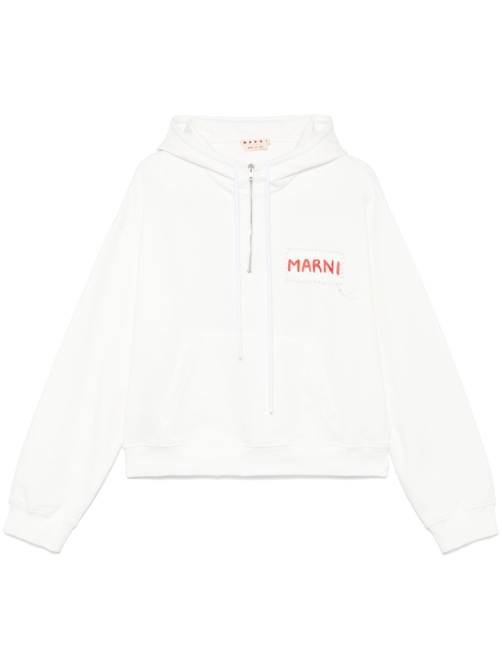 logo-patch hoodie Highlights - White - Short front zip fastening - Drawstring hood - Front pouch pocket - Ribbed cuffs and hem Made in Italy Composition Outer: Cotton 75%, Organic Cotton 25% Lining: Cotton 75%, Organic Cotton 25% SIZE & FIT Model measurements Height 6 ft 2 in(1.87 m) Bust/Chest 38.18 in(97 cm) Hips 36.61 in(93 cm) Waist 29.13 in(74 cm) Measurement CHEST 47.99 in(121.9 cm) SLEEVE LENGTH 23.5 in(59.7 cm) WAIST 42 in(106.7 cm) Shoulder Width 23.5 in(59.7 cm) FittingInformation Designed for a relaxed fit, this piece allows for comfort and movement when worn The ribbed hem offers a close, comfortable fit Made from a midweight non-stretch fabric, this piece offers minimal elasticity when worn