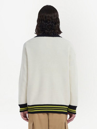 WHITE COTTON AND WOOL CARDIGAN WITH PATCH