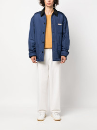 logo-patch lightweight jacket Highlights - Navy blue - Logo patch at the chest - Contrasting collar - Classic collar - Front button fastening - Long sleeves - Chest patch pocket - Two side patch pockets - Straight hem Made in Italy Composition Outer: Polyester 86%, Polyurethane 14% Lining: Polyester 100%, Cotton 51%, Viscose 44% SIZE & FIT Model measurements Height 6 ft 2 in(1.87 m) Bust/Chest 36.61 in(93 cm) Hips 35.03 in(89 cm) Waist 27.95 in(71 cm) FittingInformation Designed for a boxy fit, intended for a loose fit throughout Made from a midweight non-stretch fabric This piece fits true to size – take your usual size Washing instructions Dry Clean Only