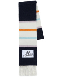 logo-patch striped scarf Highlights - White/black/multicolour - Alpaca wool-blend - Knitted construction - Vertical stripe pattern - Logo patch to the front - Fringe detailing - Rectangle shape - Extra-long length - Wraparound style Made in Italy Composition Alpaca 60%, Wool 25%, Polyamide 15% SIZE & FIT Measurement LENGTH 94.48 in(240 cm) WIDTH 7.87 in(20 cm) Washing instructions Read Manufacturer Guidelines