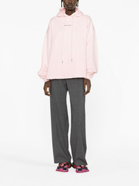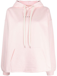 logo-print cotton hoodie Marni puts its stamp on the classic hoodie with this light-pink design. Cut from cotton, it’s printed with black logo lettering at the chest and finished with a signature raw hem. Highlights - Light pink - Cotton - Logo print to the front - Drawstring hood - Long sleeves - Straight hem - Raw-cut hem Imported Composition Cotton 100% SIZE & FIT Model measurements Height 5 ft 10 in(1.79 m) Bust/Chest 31.1 in(79 cm) Hips 35.03 in(89 cm) Waist 24.01 in(61 cm) FittingInformation Designed for an oversized fit, offering additional room throughout Made from a midweight non-stretch fabric, this piece offers minimal elasticity when worn This piece fits true to size – take your usual size