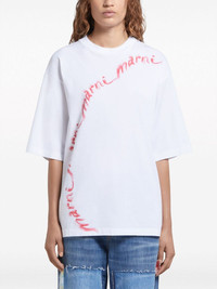 WHITE ORGANIC COTTON T-SHIRT WITH WAVY LOGO