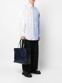logo-print leather tote bag black/blue calf leather blend logo print to the front internal logo patch two long top handles main compartment internal zip-fastening pocket Made in Italy Composition Outer: Calf Leather 100% Lining: Cotton 100% SIZE & FIT Model measurements Height 6 ft 2 in(1.87 m) Bust/Chest 36.41 in(92.5 cm) Hips 35.43 in(90 cm) Waist 29.52 in(75 cm)