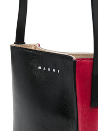 logo-print single-strap shoulder bag black/cardinal red leather logo print to the front contrasting panel detail snap-fit fastening open top single shoulder strap cotton lining Made in Italy Composition Lining: Cotton 100% Outer: Brass 100%, Bovine Leather (top grain) 100% SIZE & FIT Model measurements Height 6 ft 0 in(1.84 m) Bust/Chest 35.82 in(91 cm) Hips 37 in(94 cm) Waist 28.34 in(72 cm)