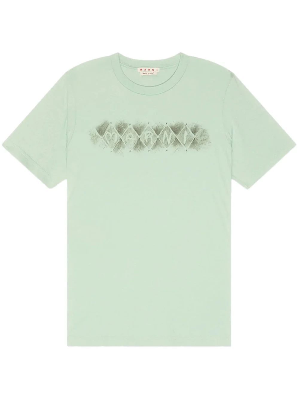 logo-print T-shirt Highlights - Green - Organic cotton - Lightweight jersey - Logo print to the front - Round neck - Short sleeves - Straight hem - Conscious: this product contains organic cotton where the cultivation and manufacturing process restricts the use of chemicals, eliminates pesticides or artificial fertilisers and incorporates methods that respect biodiversity, improve soil quality, and reduce water consumption. - Learn more about what makes a product conscious on our conscious criteria page Made in Italy Composition Organic Cotton 100% Washing instructions Read Manufacturer Guidelines