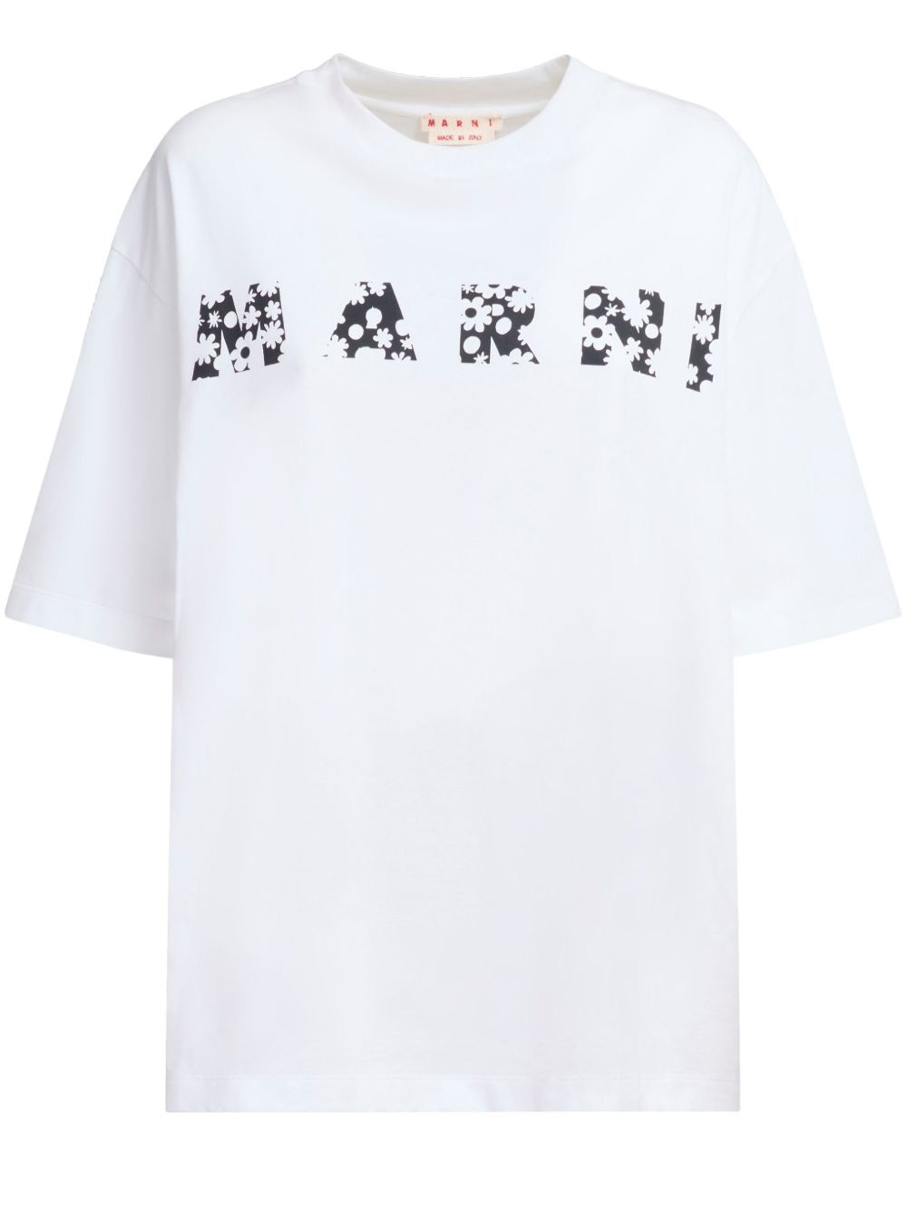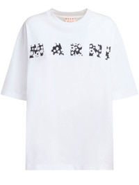 BLACK COTTON T-SHIRT WITH MARNI POP FIELDS LOGO
