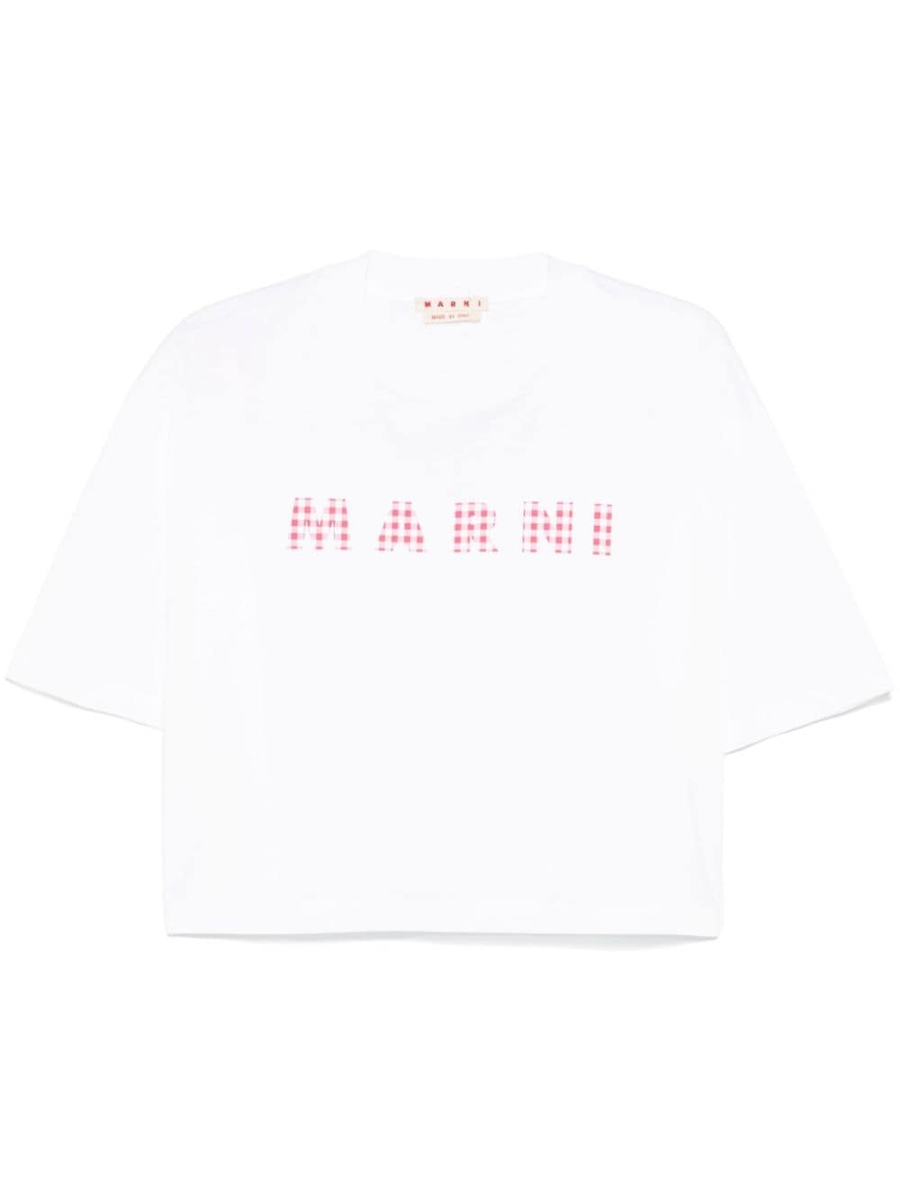 WHITE JERSEY COTTON T-SHIRT WITH CHECKED MARNI LOGO
