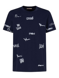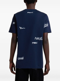 DEEP BLUE COTTON T-SHIRT WITH MULTIGRAM MARNI PRINT