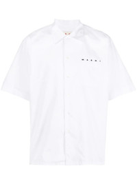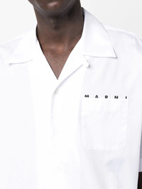 logo-print poplin bowling shirt Highlights - Cloud white - Cotton - Logo print to the front - Spread collar - Front button fastening - Short sleeves Imported Composition Cotton 100% SIZE & FIT Model measurements Height 6 ft 2 in(1.87 m) Bust/Chest 36.41 in(92.5 cm) Hips 37 in(94 cm) Waist 29.52 in(75 cm) FittingInformation Designed for a boxy fit, intended for a loose fit throughout Made from a midweight non-stretch fabric This piece fits true to size – take your usual size Washing instructions Machine Wash