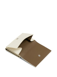 logo-stitch tri-fold leather wallet Highlights - Off-white/cognac brown - Calf leather - Grained texture - Tri-fold design - Logo stitching at front - Press-stud fastening - Note compartment - Internal card slots Made in Italy Composition Outer: Calf Leather 100% SIZE & FIT Measurement DEPTH 0.98 in(2.5 cm) LENGTH 2.75 in(7 cm) WIDTH 3.93 in(10 cm)