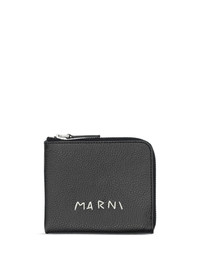 BLACK LEATHER ZIP-AROUND WALLET WITH MARNI MENDING