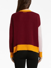 colour-block cashmere jumper Highlights - Light pink/bordeaux red/orange - Cashmere - Knitted construction - Fine knit - Round neck - Long sleeves - Ribbed cuffs and hem - Flared hem Made in Italy Composition Cashmere 100% SIZE & FIT FittingInformation Designed to be unstructured, offering a loose fit throughout Made with a midweight knit, this piece offers some stretch This piece fits true to size – take your usual size